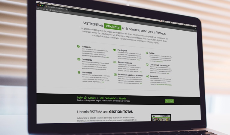 54STROKES is a web platform (100% in the Internet Cloud) which provides an integral site for all your Golf Tournaments, where each tournament can have a different design or own and where the management of each one Starts from the administration of the pre-registrations and inscriptions, through generation of outputs, printing of scorecards, a simple capture of results, automatic application and presentation of your live scoring web, formalization of results, automated notifications and automatic generation Statistics… all in one continuous cycle for each round of play in each of your golf tournaments.